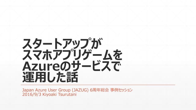 スタートアップがスマホアプリゲームをAzureのサービスで運用した話スタートアップがスマホアプリゲームをAzureのサービスで運用した話 - Download as a PDF or view online for free