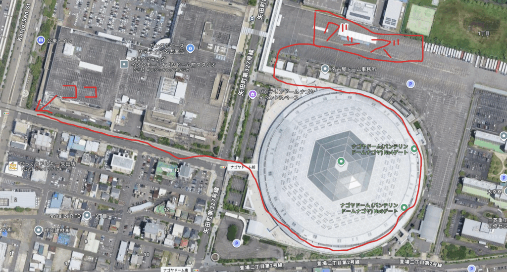 この日は、朝からコンサートの会場のバンテリンドームに行ってグッズを入手して、そんでコンサートを楽しむ 1 日です。