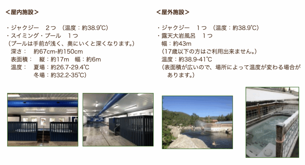 温泉は、日帰り入浴は $20 で入れるので、温泉パスなしの部屋の場合はこれを購入するんでしょうね。