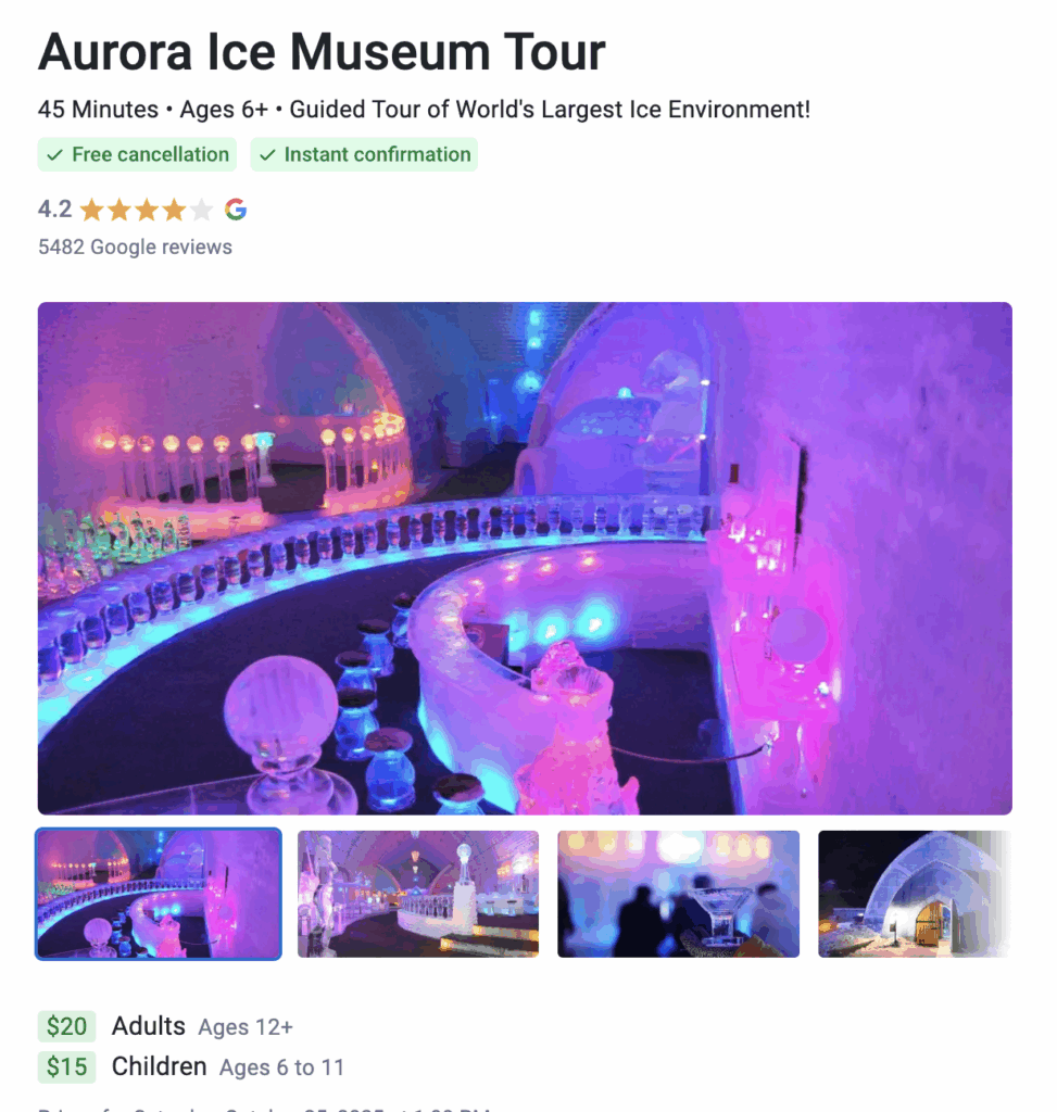 あとは、アクティビティでオーロラ観測ツアーってあるっぽい。$110 らしい。