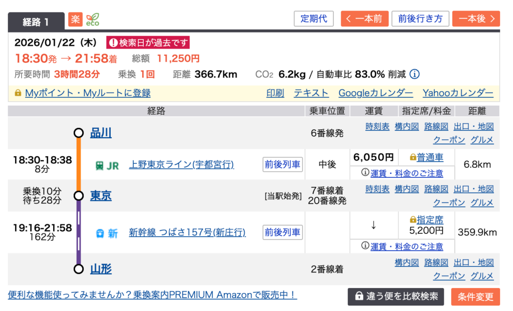 そうなると、山形着が 22:00 くらいなので、そこからご飯食べられるお店はかなり限られちゃうんだよな〜って感じでした。