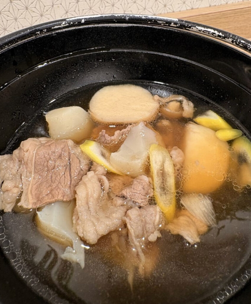 関東の人にとってはしょっぱいと思うから、薄めがおすすめと言われていたんだけど、疲れていて眠くて普通で頼んじゃった。