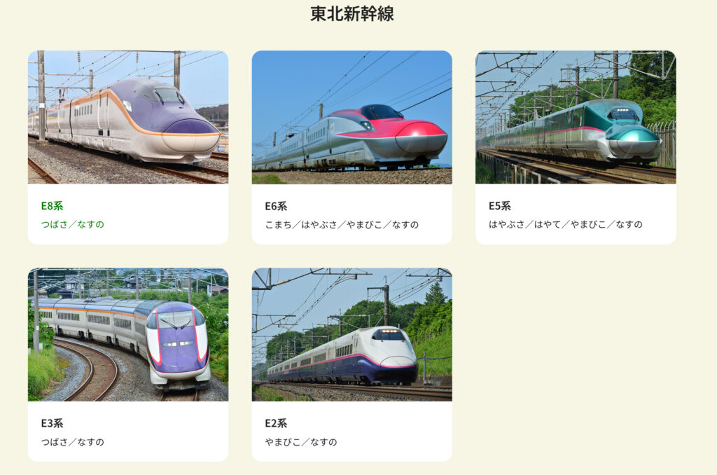 っていうか、東北新幹線だけでこんなに種類あるんだーって思ってみたり。